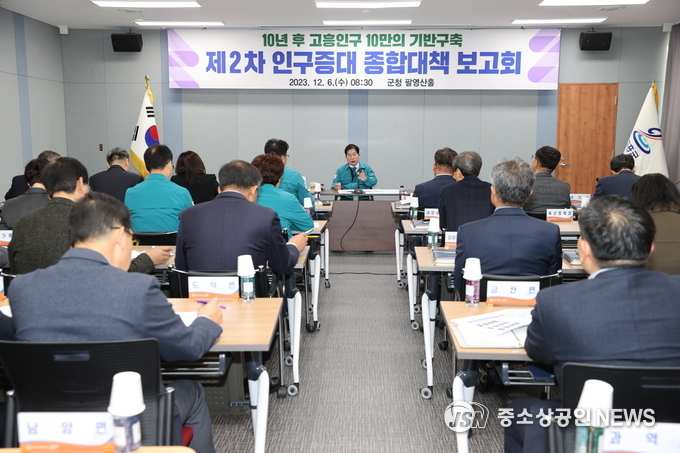 전남 고흥군은 지난 6일 오전 군청 팔영산홀에서 전 부서장과 읍면장 등 40여 명이 참석한 가운데 제2차 고흥군 인구증대 종합대책 보고회를 가졌다.