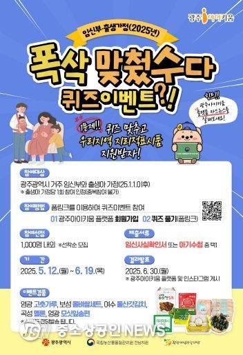 지원 대상은 임산부 또는 2025년 1월 1일 이후 출산한 가정이며, ‘광주아이키움’ 플랫폼을 통해 간단한 퀴즈를 풀고 임신확인서, 아기수첩 등 증빙서류를 제출하면 된다.