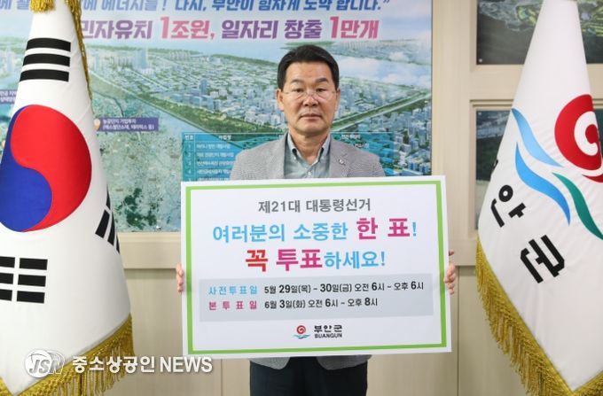 권익현 군수는 “군민 여러분의 소중한 한 표는 부안을 넘어 대한민국의 미래를 바꾸는 중요한 결정”이라며 “부안군 투표율이 전북을 넘어 전국에서 투표율 1위가 될 수 있도록 꼭 투표에 참여해달라”고 투표 참여를 독려했다.