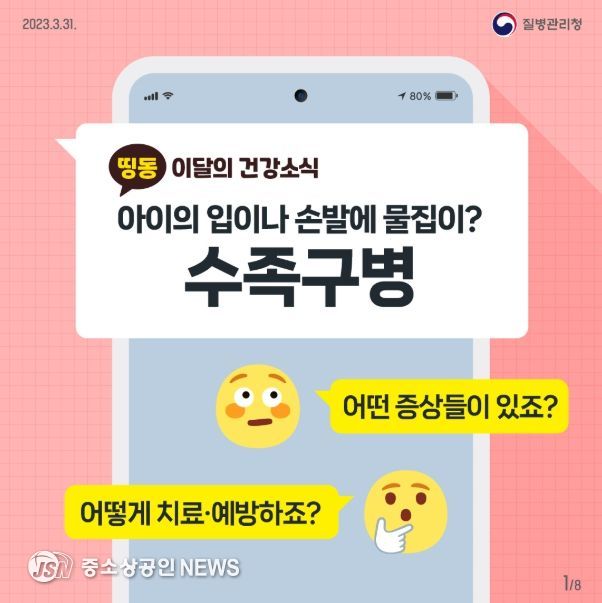 질병관리청은 수족구병 환자수가 5월 이후 지속적으로 증가하는 양상을 보이고 있다고 밝히며, 영유아가 있는 가정과 보육·교육시설에서의 예방수칙 준수를 당부했다.