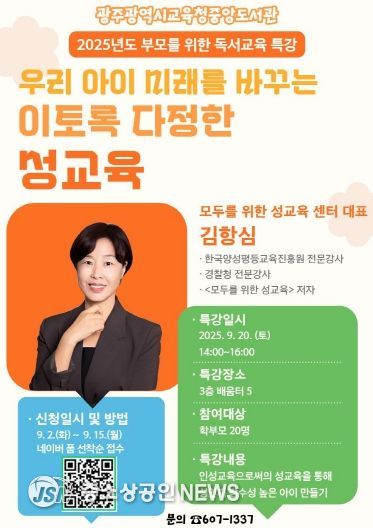 광주광역시교육청중앙도서관은 오는 20일 오후 2시 본관 3층 배움터 5실에서 ‘부모를 위한 독서교육 특강’을 운영한다.