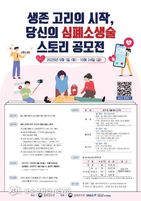 질병관리청은 심폐소생술 중요성에 대한 인식 제고 및 시행 확산을 위해 '생존 고리의 시작, 당신의 심폐소생술 스토리 공모전'을 개최한다.