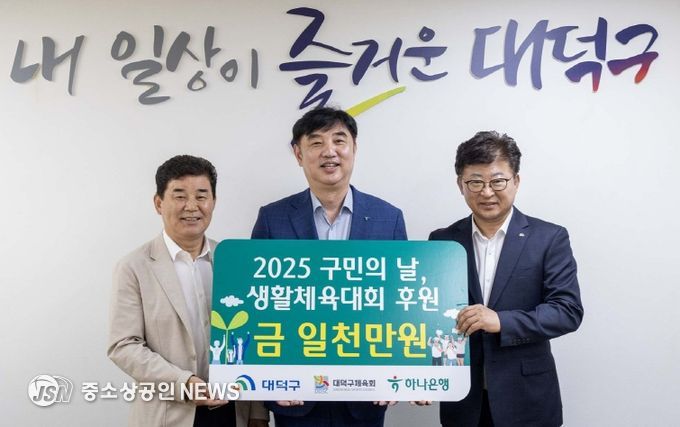 대전 대덕구는 하나은행 충청영업그룹으로부터 ‘2025년 구민의 날’과 ‘대덕구민 체육대회’를 위한 후원금 1000만원을 기탁받았다고 15일 밝혔다.