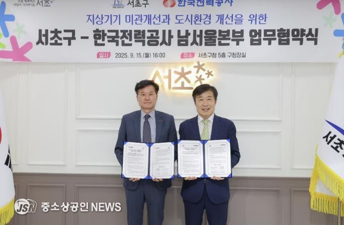 서울 서초구가 15일 서초구청에서 한국전력 남서울본부와 ‘지상기기 미관 개선과 도시환경 개선을 위한 업무협약’을 체결했다고 밝혔다. 이번 협약은 두 기관이 상호 협력하여 서초구 공공보도상 지상기기 정비를 통해 도시환경을 개선하고 쾌적한 보행환경을 만들기 위해 추진됐다.