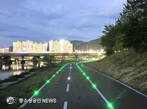 장성군이 자전거 이용자 안전 확보를 위해 황룡강변 자전거도로에 ‘활주로형 엘이디(LED) 표지병’을 설치했다.