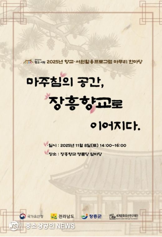 장흥향교는 ‘2025년 우리고장 국가유산 활용사업 향교·서원 활용사업’의 결실을 공유하고, 새로운 도약을 다짐하는 성과공유 한마당을 오는 11월 8일 오후 2시에 개최한다.