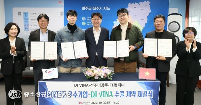 시는 30일 전주시장실에서 우범기 전주시장과 김완엽 DI VINA 대표, 바이전주 우수기업 대표 등이 참석한 가운데 ‘바이전주 우수업체-DI VINA 수출계약 체결식’을 가졌다.