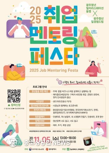 광주광역시는 청년들의 진로 탐색과 취업 준비를 돕기 위한 ‘2025 취업멘토링 페스타’를 오는 5일 오후 1시부터 6시까지 시청 1층 시민홀에서 연다.