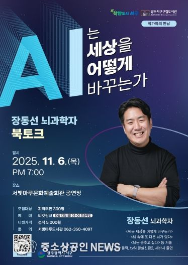 광주광역시 서구는 오는 6일 오후 7시 서빛마루문화예술회관에서 대한민국 대표 뇌과학자인 장동선 박사를 초청해 ‘특별 북토크’를 개최한다. 이번 북토크는 ‘AI는 세상을 어떻게 바꾸는가’라는 주제로 1부 강연과 2부 대담 프로그램으로 진행된다.