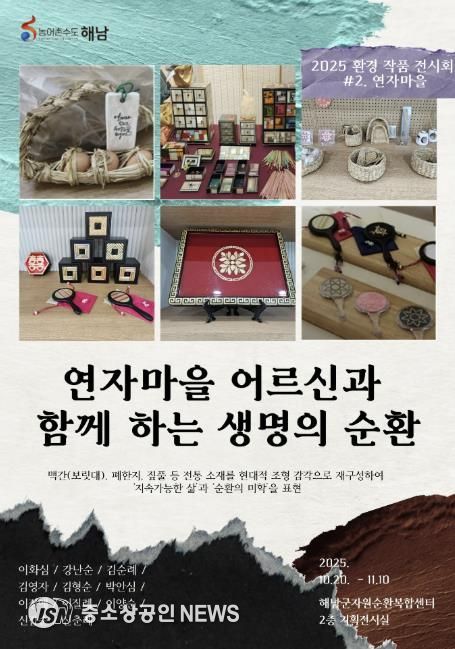해남군자원순환복합센터에서는 2025년 하반기 기획전시 두 번째 순서로 ‘연자마을 어르신과 함께 하는 생명의 순환’을 선보여 호평받고 있다. 지난 20일 개막한 이번 전시회는 11월 10일까지 센터 2층 기획전시실에서 이어진다.