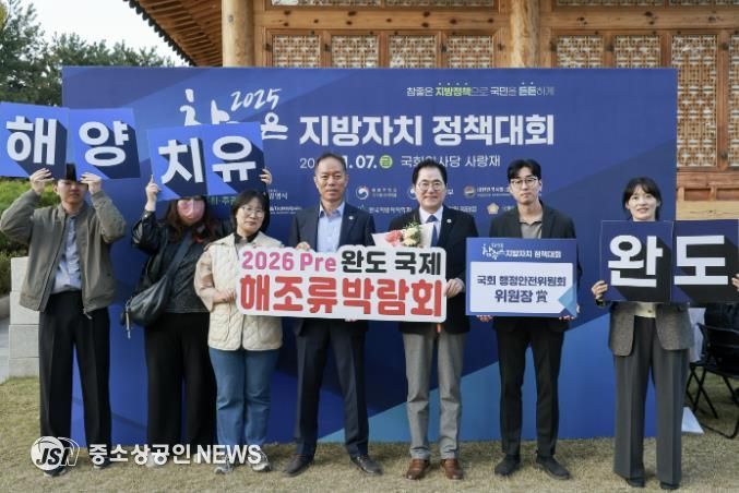 완도군은 지난 7일 국회의사당 사랑재에서 열린 ‘2025 참 좋은 지방자치 정책대회’에서 ‘치유 바다 인공지능(AI) 수산양식 플랫폼 사업’으로 국회 행정안전위원장상을 수상했다.