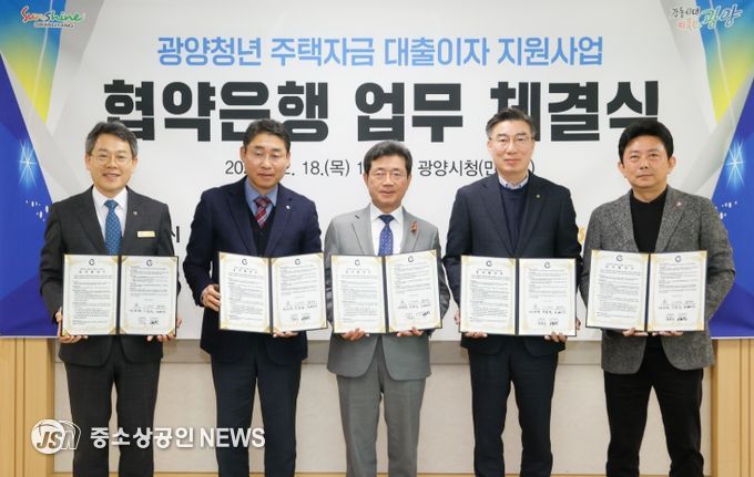 광양시는 2026년도 청년주택자금 대출이자 지원사업 추진에 앞서 보다 효율적인 사업 운영을 위한 협력 체계를 구축하고자, 지난 19일 시청 만남실에서 관내 4개 금융기관(신한은행, NH농협은행, 광양농협, 동광양농협)과 청년 주택자금 대출이자 지원사업업무협약을 체결했다.