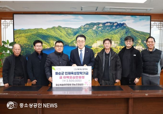 화순군은 지난 18일 화순복숭아연합회 영농조합법인(대표 이교육)이 지역 인재 육성과 학생들의 학업 지원을 위해 장학금 250만 원을 화순장학회에 기부했다고 밝혔다.