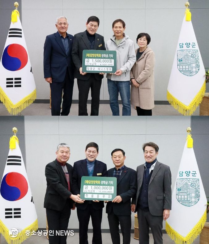 (재)담양장학회는 지난 18일과 19일, 담양군 테니스협회에서 150만 원을, 죽풍동우회에서 100만 원을 지역 인재 양성을 위한 장학금으로 기탁했다고 밝혔다.