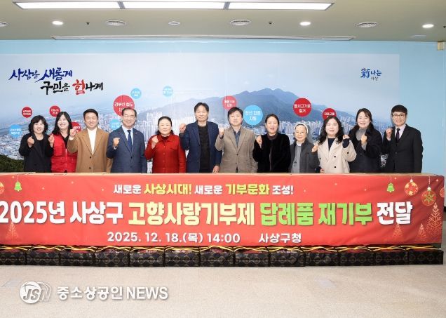 부산 사상구는 지난 18일 본관 3층에서‘2025년 고향사랑기부제 답례품 재기부 전달식’을 개최했다고 밝혔다.