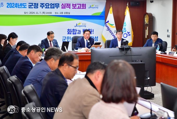 장성군이 7일 상황실에서 ‘2024년 군정주요업무 추진실적보고회’를 열었다. 김한종 장성군순 주재로 부군수, 건설산업국장, 실‧과‧소 부서장이 참석해 군정주요업무 372건에 대한 보고를 진행했다. 주요 성과, 문제점 분석 등 심도 있는 보고와 토론이 이어졌다.