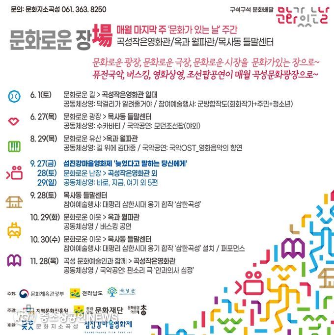 곡성군은 지난 6월부터 11월까지 추진한 “2024년 문화가 있는 날 구석구석 문화배달 사업을 성료 했다”라고 4일 밝혔다.
