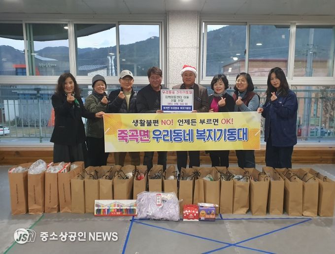 곡성군 죽곡면 우리동네 복지기동대가 지난 9일 목석죽지역아동센터 아동들에게 크리스마스 선물을 전달했다.