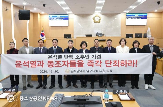 광주 남구의회 의원들은 20일 성명서를 통해 12월 14일 윤석열 대통령의 탄핵 소추안 가결을 환영하며, 5‧18 민주정신으로 비상계엄과 포고령에 저항한 국민과 광주 시민, 그리고 21만 남구민들의 승리를 강조했다.