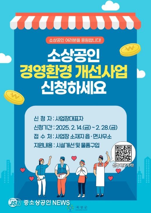 조상래 곡성군수는 “소상공인의 경영환경을 개선하는 것은 곧 소상공인의 사업 경쟁력 강화와 매출 증대, 지역경제 활성화로 이어질 수 있을 것이다. 이번 사업이 매출 감소로 시름하는 지역 소상공인에게 큰 힘이 되길 바란다”라고 전했다.