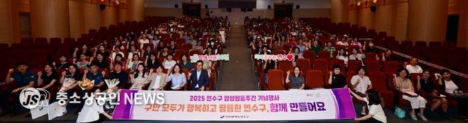 연수구는 지난 1일 연수아트홀에서 ‘구민 모두가 평등하고 행복한 연수구’를 주제로 양성평등정책에 대한 구민의 관심을 제고하고 양성평등 문화 확산을 위한 기념행사를 개최했다.