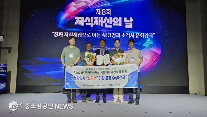 인천광역시는 대통령소속 국가지식재산위원회 주최로 9월 4일 서울 양재 L타워에서 열린 ‘제8회 지식재산의 날’ 기념식에서 광역지자체 부문 최우수기관으로 선정되어 국가지식재산위원회 위원장 기관표창을 수상했다고 밝혔다.