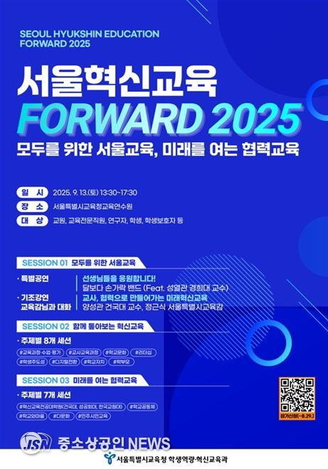 서울특별시교육청은 9월 13일 오후 1시 30분, 서울시교육청교육연수원에서'서울혁신교육 FORWARD 2025'를 개최한다.