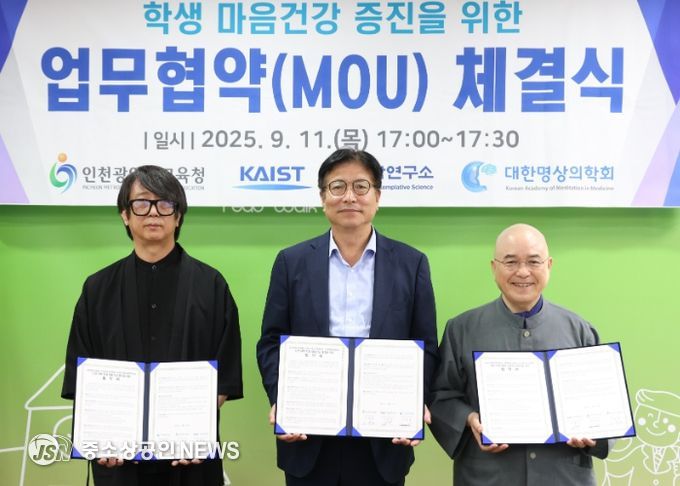 인천광역시교육청은 11일 KAIST 명상과학연구소, 대한명상의학회와 ‘학생 마음건강 증진을 위한 업무협약’을 체결했다.