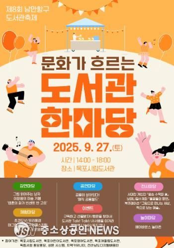 축제 당일인 27일 오후 2시부터는 목포시 소속 도서관과 독립서점, 지역 커뮤니티 등 8개 기관이 참여해 체험마당·전시마당·놀이마당·이벤트 행사를 운영한다.