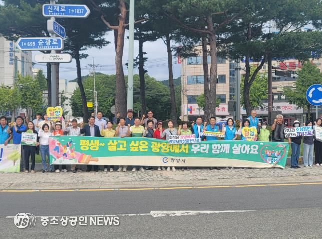 참여자들은 △지역화폐 이용으로 지역경제 살리기 △광양사랑상품권 이용 촉진 △소상공인 지원을 위한 ‘먹깨비와 함께!’ 캠페인 △“살고 싶은 광양, 함께해요!” 등의 문구가 적힌 피켓과 현수막을 활용해 홍보를 진행했다.