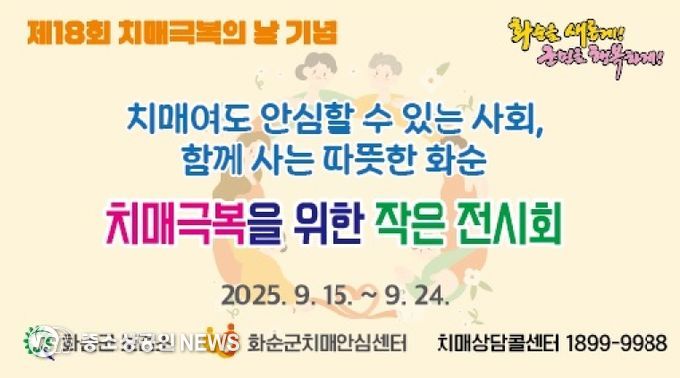 화순군은 제18회 치매 극복의 날(9. 21.)을 맞아 오는 15~24일까지 치매 극복 주간으로 정하고 치매여도 안심할 수 있는 사회를 만들기 위해 다양한 행사를 개최한다.
