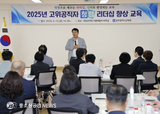 광주시교육청은 12일 시교육청 지방공무원어울배움터 마루실에서 본청 및 산하기관 4급(상당) 고위공직자 50여 명을 대상으로 ‘2025년 고위 공직자 청렴리더십 향상 교육’을 실시했다.
