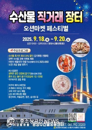 광양시가 수산물 소비 촉진과 지역경제 활성화를 위해 9월 18일부터 20일까지 3일간, 광양수산물유통센터 1층에서 신선한 수산물을 저렴한 가격에 만나볼 수 있는 ‘수산물 직거래장터’를 개최한다고 밝혔다.