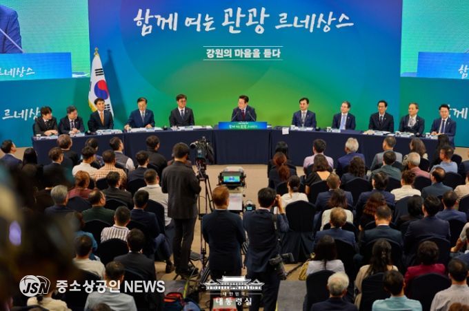 이 대통령은 "강원도는 전국 최대 관광지이자 최고의 청정지역이기도 한데, 또 한편으로 남북 대치에 따른 엄청난 희생을 치르는 지역"이라며 "지역 내 성장 발전이 상대적으로 정체가 되면서 많은 분이 수도권으로 떠난, 소위 수도권 집중 피해를 다른 지역과 똑같이 입고 있는 곳"이라고 밝혔다.