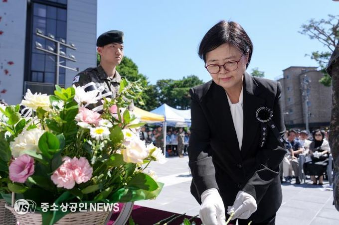 이순희 서울 강북구청장이 11일 우이동 만남의 광장에서 열린 ‘함준호 장군 전사지비 이전 추모식’에 참석했다.