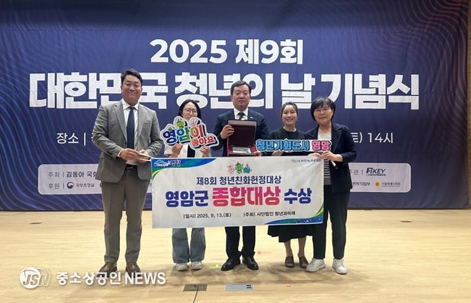 영암군이 13일 국회의원회관에서 열린 ‘2025 제9회 대한민국 청년의 날 기념식‘에서 국회사무처 소관 청년단체 사단법인 ‘청년과 미래’ 주관의 ‘제8회 청년친화헌정대상’에서 광주·전남지역 ‘종합대상’을 수상했다.