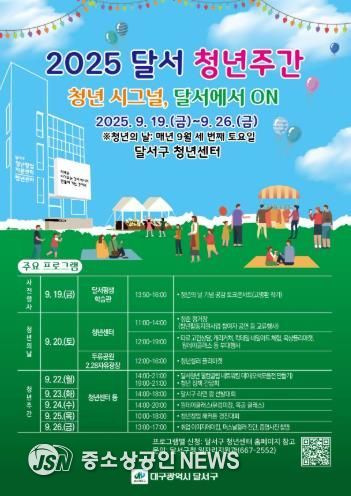 대구 달서구는 오는 9월 20일 ‘청년의 날’(매년 9월 셋째 토요일)을 기념해 9월 19일부터 26일까지 '2025년 달서 청년주간'을 개최한다고 밝혔다.
