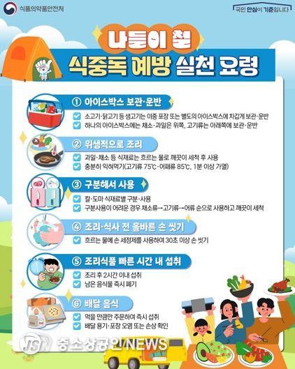 가을철은 일교차가 크고 식중독 발생 가능성이 높은 시기로, 살모넬라균과 병원성대장균 감염 우려가 높다. 이를 예방하기 위해 육류는 75℃ 이상에서 충분히 익히고, 채소류는 물로 3회 이상 세척하는 등 조리과정에서 주의가 필요하다.