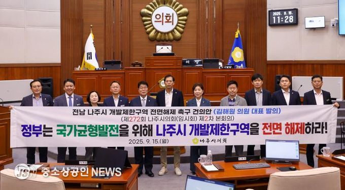 마지막으로 김해원 의원은 “지방의 생존과 국가 균형발전을 위해 더 이상 미룰 수 없는 과제”라며, “정부는 형평성과 현실성을 반영해 조속히 나주시의 개발제한구역 전면 해제에 나서야 한다”고 밝혔다.