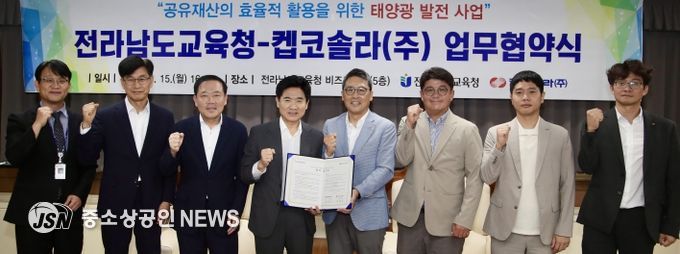 전라남도교육청이 9월 15일 오후 청사 5층 비즈니스실에서 켑코솔라㈜와 ‘공유재산 태양광 발전사업 협약’을 체결했다.