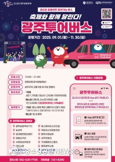 광주광역시는 ‘지(G)-페스타 광주’ 가을시즌을 맞아 광주투어버스(관광형 DRT)의 운행을 확대하고 다인패스권을 도입하는 등 관광객 편의를 높여 지역 관광 활성화를 이끈다.