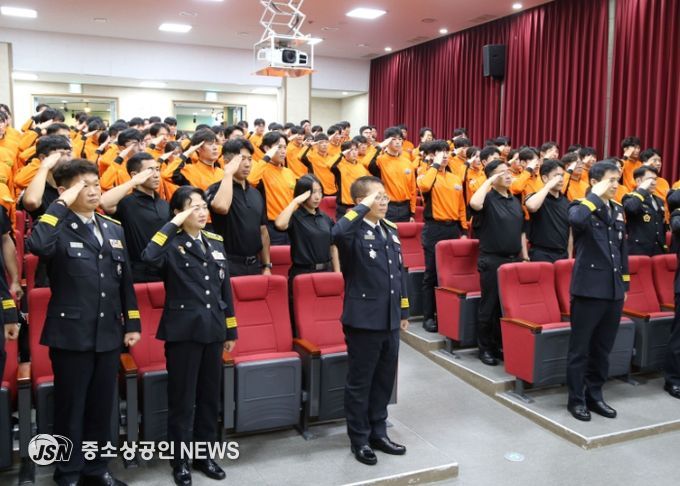 광주광역시 소방학교는 지난 15일 소방학교 대강당에서 신임 소방공무원 102명과 교직원이 참석한 가운데 ‘제104~105기 신임교육 소방사 과정 입교식’을 개최했다.