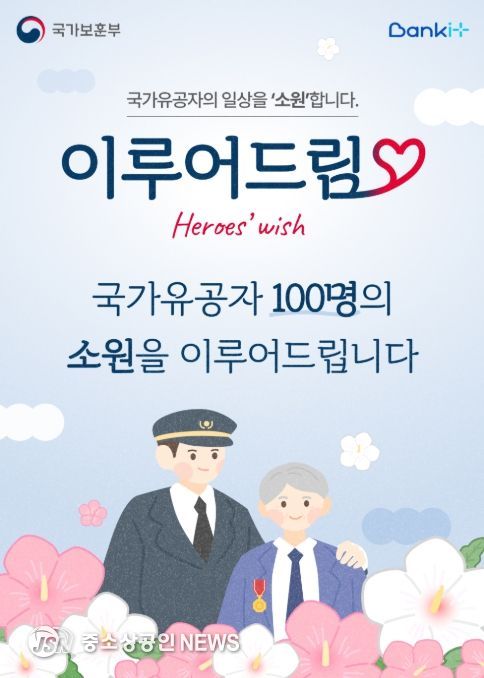 국가보훈부는 은행연합회와 함께 국가유공자의 특별한 사연이 담긴 소원을 들어주는 ‘이루어드림’ 프로젝트를 진행, 지난해에 이어 올해에도 100명의 지원 대상자를 선정하고 지원금을 지급한다고 밝혔다.