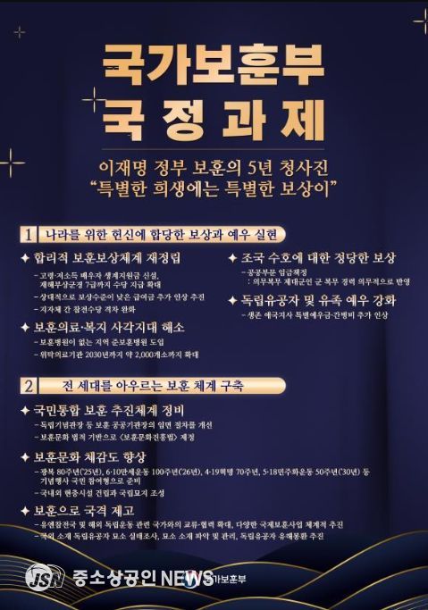 국가보훈부는 16일 새정부 국정과제로 '나라를 위한 헌신에 합당한 보상과 예우 실현', '전 세대를 아우르는 보훈 체계 구축'이 확정됐다고 밝혔다.