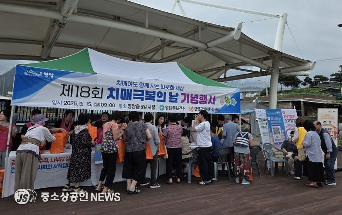 영암군보건소가 15일 영암읍 오일시장에서 ‘치매여도 함께 사는 따뜻한 세상’을 구호로 ‘제18회 치매극복의 날 기념행사’를 개최했다.