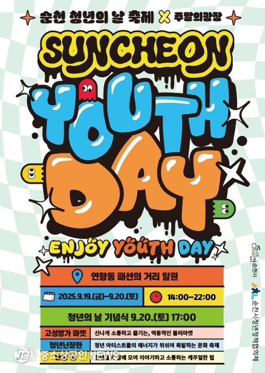 순천시는 매년 9월 세 번째 토요일 ‘청년의 날’을 기념해 ‘2025 순천 청년의 날 축제’를 오는 19일부터 20일까지 이틀간 연향동 패션의 거리 일원에서 개최한다고 밝혔다.