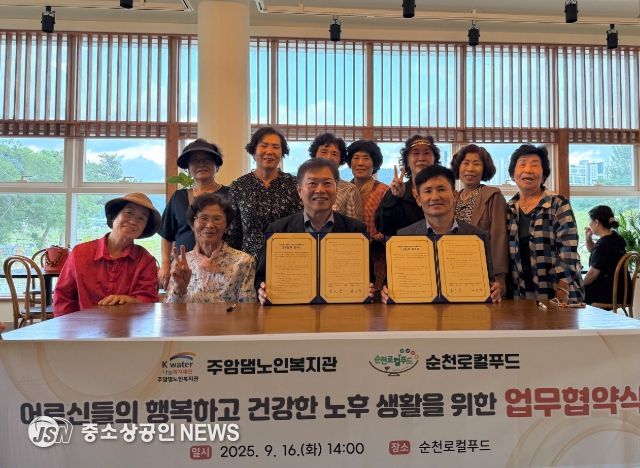 순천시 출자 기관인 농업회사법인 순천로컬푸드㈜가 지난 16일 K-water 나눔복지재단 주암댐노인복지관(관장 문응연)과 업무 협약을 체결했다.