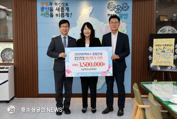 ㈜아트하우스종합건설(대표 윤강미)가 지난 16일 구청장실에서 대한무공수훈자회 광산구지회(회장 백승문) 노후 냉난방기 교체를 위해 후원금 350만 원을 후원했다.