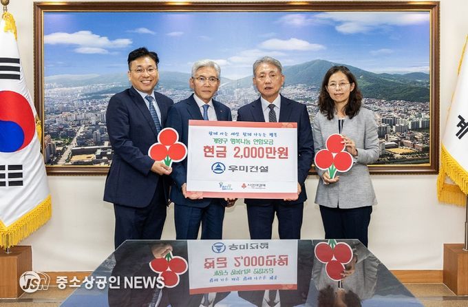 인천광역시 계양구는 9월 17일, 우미건설이 관내 기후위기 취약계층을 지원하기 위해 성금 2,000만 원을 기탁했다고 밝혔다.