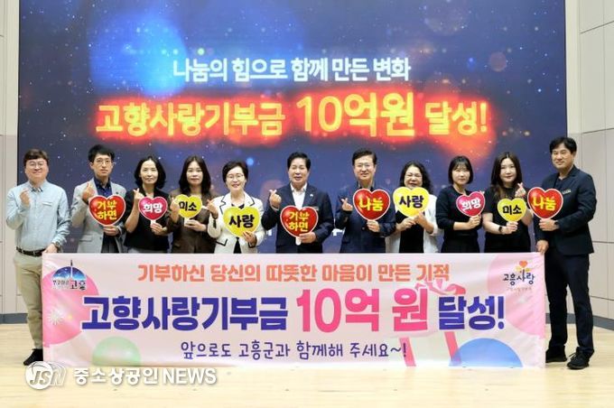 고흥군은 올해 초부터 추진한 고향사랑기부금이 9월 18일 기준 누적 10억 원을 돌파했다고 밝혔다. 이는 전라남도 최초 성과로, 전년 같은 기간보다 1.8배 증가한 수치다.